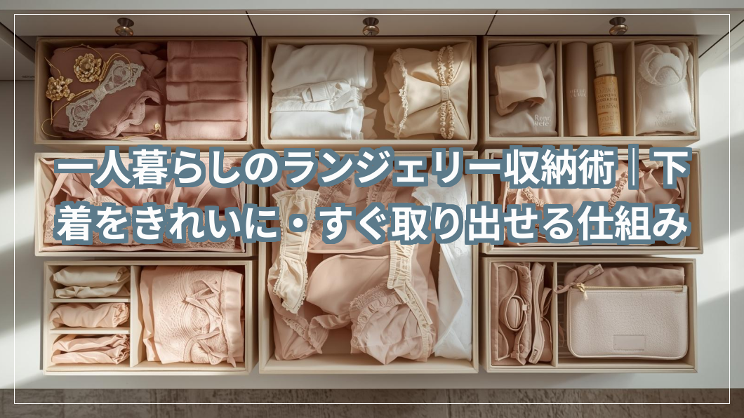 一人暮らしのキッチンは、スペースが限られているからこそ工夫が大切。 実は、“100均アイテムを上手に使うだけで、見た目も使いやすさも劇的に変わる”んです。 私も以前は「食器を重ねて置くしかない」と思い込んでいましたが、 ワイヤーラックやトレー収...一人暮らしのランジェリー収納術|下着をきれいに・すぐ取り出せる仕組み