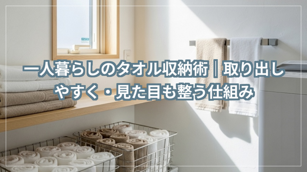 一人暮らしの部屋探しで「収納の広さ」は最優先事項ですよね。私も服が好きで、「クローゼットが広い」という理由で今の部屋に決めたはずが、気づけばラックから服が溢れ、ベッドの上が「一時置き場」として常態化していました。ですが、「収納が狭いから...一人暮らしのタオル収納術|取り出しやすく・見た目も整う仕組み